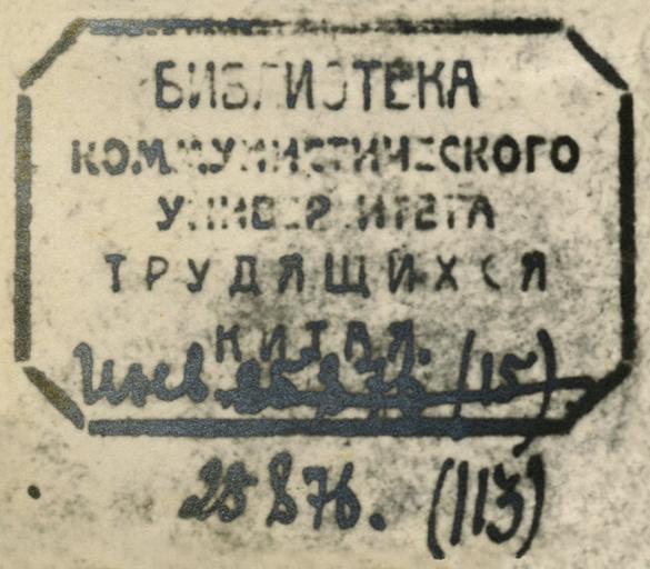 | Keywords: hardware = epson expression 100 hardwareepsonexpression100 software = epson scan v2.20a an softwareepsonscanv220aan text writing sign The Communist University of the Toilers of China, known as the Sun-Yat Sen University of the Toilers of China until September 17th, 1928 was a Communist International school for Chinese revolutionaries from both the Kuomintang (KMT) and the Communist Party of China (CPC) that operated in the years 1925-1930 and was located in Moscow. It was named in honor of Sun-Yat Sen for his contributions to the Chinese Revolution of 1911 as well as his friendly stance toward the Soviet Union at the time. Students there were taught basic principles of Marxism and Leninism, as well as propaganda and mobilization techniques in theory and practice. Famous graduates included Deng Xiaoping, leader of the People’s Republic of China in the 1980s, and Chiang Ching-kuo, leader of the Republic of China (Taiwan) in the 1970s and son of Nationalist leader Chiang Kai-Shek, among many others who would be influential in politics in China. This book stamp is from a book looted by the Nazis and sorted by Colonel Seymour Pomrenze, one of “the Monuments Men,” at the Offenbach Archival Depot. There are two scrapbooks of archival markings from the books sorted at the Offenbach Depot in the Seymour Pomrenze Collection held by the American Jewish Historical Society (Call number P-933) There is a finding aid for the collection here The digitized scrapbooks are available here and here. For more information on this project check the Center’s blog: 16thstreet.tumblr.com/tagged/Offenbach-Depot Dr. Mitch Fraas, Acting Director of the Digital Humanities Forum at the University of Pennsylvania Libraries' Special Collections Center is working on a similar project for the German book stamps based on NARA microfilm of the volumes the American Jewish Historical Society currently holds. See viewshare.org/views/mfraas/offenbach-bookplates/ The Center for Jewish History would like to acknowledge the following: The American Jewish Historical Society, who graciously allowed the use of their archival materials and digital content; Mitch Fraas, Acting Director of the Digital Humanities Forum at the University of Pennsylvania Libraries' Special Collections Center, for his data and technical assistance in this project; David Rosenberg, Senior Manager for Communications, and Melanie Meyers, Senior Reference Services Librarian for Special Collections, for managing and creating the digital map; as well as Reference Services Librarian Zachary Loeb and Reference Services Assistant Ilya Slavutskiy for their work on translating and mapping. For copyright information, click here The Communist University of the Toilers of China, known as the Sun-Yat Sen University of the Toilers of China until September 17th, 1928 was a Communist International school for Chinese revolutionaries from both the Kuomintang (KMT) and the Communist Party of China (CPC) that operated in the years 1925-1930 and was located in Moscow. It was named in honor of Sun-Yat Sen for his contributions to the Chinese Revolution of 1911 as well as his friendly stance toward the Soviet Union at the time. Students there were taught basic principles of Marxism and Leninism, as well as propaganda and mobilization techniques in theory and practice. Famous graduates included Deng Xiaoping, leader of the People’s Republic of China in the 1980s, and Chiang Ching-kuo, leader of the Republic of China (Taiwan) in the 1970s and son of Nationalist leader Chiang Kai-Shek, among many others who would be influential in politics in China. This book stamp is from a book looted by the Nazis and sorted by Colonel Seymour Pomrenze, one of “the Monuments Men,” at the Offenbach Archival Depot. There are two scrapbooks of archival markings from the books sorted at the Offenbach Depot in the Seymour Pomrenze Collection held by the American Jewish Historical Society (Call number P-933) There is a finding aid for the collection here The digitized scrapbooks are available here and here. For more information on this project check the Center’s blog: 16thstreet.tumblr.com/tagged/Offenbach-Depot Dr. Mitch Fraas, Acting Director of the Digital Humanities Forum at the University of Pennsylvania Libraries' Special Collections Center is working on a similar project for the German book stamps based on NARA microfilm of the volumes the American Jewish Historical Society currently holds. See viewshare.org/views/mfraas/offenbach-bookplates/ The Center for Jewish History would like to acknowledge the following: The American Jewish Historical Society, who graciously allowed the use of their archival materials and digital content; Mitch Fraas, Acting Director of the Digital Humanities Forum at the University of Pennsylvania Libraries' Special Collections Center, for his data and technical assistance in this project; David Rosenberg, Senior Manager for Communications, and Melanie Meyers, Senior Reference Services Librarian for Special Collections, for managing and creating the digital map; as well as Reference Services Librarian Zachary Loeb and Reference Services Assistant Ilya Slavutskiy for their work on translating and mapping. For copyright information, click here |