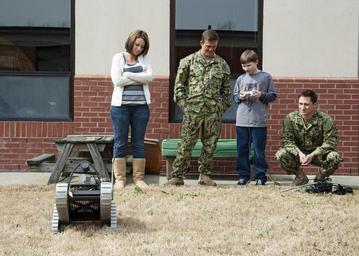 | Keywords: Community outreach program 130225-N-JV638-065.jpg en Lt Keith Caton and Explosive Ordnance Disposal 1st Class Daniel Franklin from Explosive Ordnance Disposal Mobile Unit EODMU 2 demonstrates the PackBot transportable robotic system during a visit to Central Elementary School Sailors from EODMU 2 became pen pals with the students during a recent deployment as part of a community outreach program and agreed to visit the class upon their return to answer questions and read stories as well as attend a luncheon held in their honor U S Navy photo by Mass Communication Specialist 3rd Class Randy Savarese/Released 2013-02-25 Petty Officer 3rd Class Randy Savarese https //www dvidshub net/image/875765 130225-N-JV638-065 2013-02-27 20 01 MOYOCK NC US PD-USGov-Military-Navy PackBot Images from DoD uploaded by Fæ |