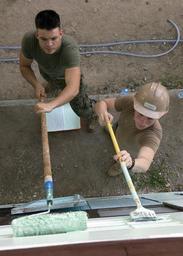 | Keywords: Community relations project at Banklong Sai Elementary School DVIDS154624.jpg en Cpl James Anderson from Aurora Colo left and equipment operator constructionman Diton Parker from Paris Mo both assigned to Combat Logistics Regiment 3 of the 31st Marine Expeditionary Unit paint a wall during a community relations activity at Banklong Sai Elementary School as part of Exercise Cobra Gold 09 an annual Thailand and U S co-sponsored joint coalition multinational military exercise designed to train a Thai U S and Singaporean Coalition Task Force The exercise will also include humanitarian civic action projects with participating nations from Indonesia Japan Singapore Thailand and the U S 2009-02-12 Seaman Gabriel Weber https //www dvidshub net/image/154624 090212-N-+++++-006 2009-03-04 00 49 UTAPHAO TH PD-USGov-Military-Navy 31st Marine Expeditionary Unit Images from DoD uploaded by Fæ |