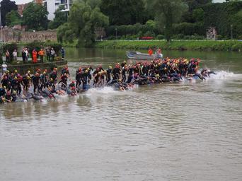 Keywords: competition start swim track and field athletes athletes triathlon danube ulm swimmer wetsuits people human kick-off