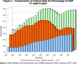| Keywords: Components of Federal Debt as % of GDP 1980-2007.svg en Components of Federal Debt As Percentage of GDP FY1980-FY2007 Source OMB Budget of the United States for FY2008 Historical Tables February 2007; CBO http //fpc state gov/documents/organization/105193 pdf The Debt Limit History and Recent Increases CRS-6 Congressional Research Service D Andrew Austin 2008-04-29 Congressional Research Service Debt-to-GDP ratio of the United States PD-USGov Components of Federal Debt as % of GDP 1980-2007.svg en Components of Federal Debt As Percentage of GDP FY1980-FY2007 Source OMB Budget of the United States for FY2008 Historical Tables February 2007; CBO http //fpc state gov/documents/organization/105193 pdf The Debt Limit History and Recent Increases CRS-6 Congressional Research Service D Andrew Austin 2008-04-29 Congressional Research Service Debt-to-GDP ratio of the United States PD-USGov |