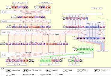 | Keywords: Composition of TEE 7 Rheingold in 1971 ja.svg ja 1972å¹´å¤ãƒ イヤã«ãŠã‘ã‚‹å—行TEEラインゴルト TEE 7 ã ICラインプファイル IC 107 ã TEEãƒãƒ¼ãƒ©ãƒ³ãƒˆ TEE 75 ã®ç·¨æˆãŠã‚ˆã³è»Šä¸¡å…¥ã‚Œæ›ãˆã®å›³ã ‚ 機関車ã®äº¤æ›ã¯å›³ç¤ºã—ã¦ã„ãªã„ã ‚ã¾ãŸæ©Ÿé–¢è»Šã®ã‚·ãƒ«ã‚¨ãƒƒãƒˆï¼ˆè»¸æ•°ç‰ï¼‰ã¯æ£ç¢ºã¨ã¯é™ã‚‰ãªã„ã ‚ IC107 ラインプファイルã¯ãƒ•ランクフルト - ãƒŸãƒ¥ãƒ³ãƒ˜ãƒ³é–“é †ç·¨æˆã ‚TEE 75 ãƒãƒ¼ãƒ©ãƒ³ãƒˆã¯ãƒ–レーメン - フランクフルト間ãŠã‚ˆã³ãƒãƒ¼ã‚¼ãƒ« - ãƒŸãƒ©ãƒŽé–“é †ç·¨æˆã ‚ Mertens Maurice; Malaspina Jean-Pierre(2007) La légende des Trans-Europ-Express LR Press ISBN 978-2-903651-45-9 p 256ã®æƒ…å ±ã«åŸºã¥ãä½ æˆã ‚ en Composition of TEE 7 Rheingold and related trains in the summer schedule of 1972 own Matsukaze 2011-02-19 TEE Rheingold |