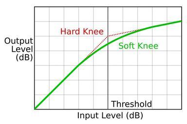 Keywords: Compression knee.svg Graph showing the Difference between a hard-knee and a soft-knee in a compressor Own 2007-09-06 Iainf Compressor audio signal processor Audio