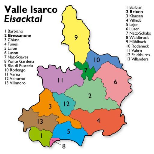 | Keywords: Comuni valle isarco-gemeinden eisacktal.svg Karte der Gemeinden der Bezirksgemeinschaft Eisacktal Valle Isarco Südtirol Alto Adige Eigenes Werk Map of the municipalities of the Eisacktal Valle Isarco district South Tyrol Own work Mappa dei comuni della Valle Isarco Eisacktal Alto Adige Südtirol Lavoro proprio Legende / Legend / Leggenda Barbian - Barbiano Brixen - Bressanone Klausen - Chiusa Villnöß - Funes Lajen - Laion Lüsen - Luson Natz-Schabs - Naz-Sciaves Waidbruck - Ponte Gardena Mühlbach - Rio di Pusteria Rodeneck - Rodengo Vahrn - Varna Feldthurns -Velturno Villanders - Villandro User Mortadelo2005 Image Comuni valle isarco-gemeinden eisacktal png Created with Inkscape Maps of South Tyrol |