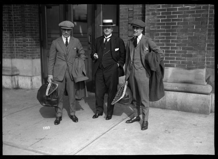 | Keywords: blackandwhite monochrome photo border black and white Mr. Con Jones with Lalonde and Dandurand VPL Accession Number: 35177 Date: 1912 Photographer/Studio: Thomson, Stuart Content: 'Famous promoter, Con Jones, who built Callister Park, imported Newsy Lalonde (for reported $3,500) left, and Leo Dandurand from east in 1912, the year Vancouver won world lacrosse championship. Lalonde was voted outstanding lacrosse star of last 50 years. Dandurand was later president of both Montreal Canadiens Hockey Club and Alouettes Football club' from Vancouver Sun Jan. 11, 1956 Topic: Lacrosse Sports Men's clothing Hats Person: Jones, Con, d. 1942 Lalonde, Edouard Cyrille (Newsy), 1887-1970 Dandurand, Joseph Viateur (Leo), 1889-1964 Location: British Columbia - Vancouver More information on our historical photograph collection: www.vpl.ca/historicalphotos Mr. Con Jones with Lalonde and Dandurand VPL Accession Number: 35177 Date: 1912 Photographer/Studio: Thomson, Stuart Content: 'Famous promoter, Con Jones, who built Callister Park, imported Newsy Lalonde (for reported $3,500) left, and Leo Dandurand from east in 1912, the year Vancouver won world lacrosse championship. Lalonde was voted outstanding lacrosse star of last 50 years. Dandurand was later president of both Montreal Canadiens Hockey Club and Alouettes Football club' from Vancouver Sun Jan. 11, 1956 Topic: Lacrosse Sports Men's clothing Hats Person: Jones, Con, d. 1942 Lalonde, Edouard Cyrille (Newsy), 1887-1970 Dandurand, Joseph Viateur (Leo), 1889-1964 Location: British Columbia - Vancouver More information on our historical photograph collection: www.vpl.ca/historicalphotos |