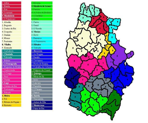Keywords: Concellos de Lugo.jpg Sumary Comarcas de Lugo ' 8A2BDF' ' FFFFFF' A Fonsagrada - ' DC143C' ' FFFFFF' A Mariña Central - ' 7FFFD4' ' FFFFFF' A Mariña Occidental - ' 00FFFF' ' FFFFFF' A Mariña Oriental - ' 00008B' ' FFFFFF' A Ulloa - ' 008B8B' ' FFFFFF' Chantada - ' FE15F6' ' FFFFFF' Lugo - ' FFD700' ' FFFFFF' Meira - ' 0000FF' ' FFFFFF' Os Ancares - ' 008000' ' FFFFFF' Quiroga - ' 708090' ' FFFFFF' Sarria - ' FAFAD2' ' FFFFFF' Terra Chá - ' 00FF00' ' FFFFFF' Terra de Lemos Amosa os concellos de Lugo con cores por comarcas Own 2005-11-17 User Freixodachamorra Maps of the province of Lugo Comarcas of Lugo |