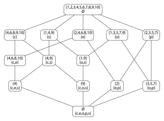 | Keywords: Concept lattice.svg A concept lattice with the numbers 1 “10 as objects and attributes square prime composite even and odd shown as initials self-made; originally uploaded as en Image Concept-lattice png 2006-10-19 David Eppstein original upload log All user names refer to en wikipedia 2006-10-25 15 43 David Eppstein 693×513×8 18010 bytes <nowiki>A concept lattice for objects consisting of the integers from 1 to 10 and attributes composite even odd prime and square </nowiki> 2006-10-20 02 59 David Eppstein 576×495×8 16063 bytes <nowiki>A concept lattice for objects consisting of the integers from 1 to 10 and attributes composite even odd prime and square </nowiki> Hasse diagrams Machine learning Ontology Files by User David Eppstein from en wikipedia Lattice theory |