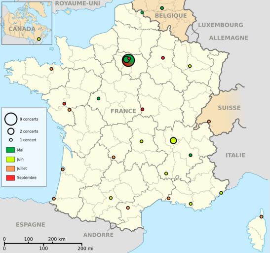Keywords: Concerts de la tournée Chedid 2015 map.svg fr Répartition géographique des concerts donnés lors de la tournée de la famille Chedid en 2015 2016-07-01 own from Départements et régions de France - Noname-2014 svg Flappiefh<br/> partly based on ideas by TwoWings other versions Atelier graphique carte cc-zero Louis Chedid Matthieu Chedid Joseph Chedid Anna Chedid 2015 concert tours 2015 concerts in France 2015 concerts in Canada 2015 concerts in Switzerland Maps of concert tours Maps of France 2015 maps |