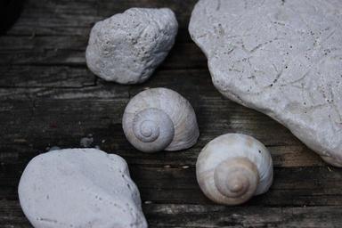 Keywords: conch stone wood still life