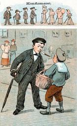 | Keywords: Confirmationed1894page324Puk.jpg The one boy is grown-up and is a man and the pal is only a boy 1894 caricature from the Danish Puk magazine showing teen-agers immediately adopting inappropriately adult manners after their confirmation a religious ceremony which to some degree marked one's coming of age in that time PD-old Fashion in 1894 Adolescence religious caricatures Confirmation in art Smoking men in art Boys in art Caricatures of teenagers Puk magazine Sailor suits in art Smoking boys in art Images by Haabet People in 1894 1894 in Denmark Teenagers in Denmark Quarrels 1894 cartoons |