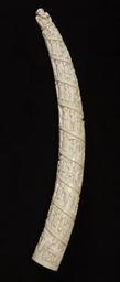 | Keywords: Congolese - Elephant Tusk with Scenes of African life - Walters 71586.jpg The tusk is carved in high relief with a procession of figures in a rising spiral It is thought to have been carved by the Vili people of Loango for the French traders who dominated the area The scenes which read from the bottom show a war between two African peoples in which the defeated are roped and led away; a sailor woodworking; coconuts being picked; a trader selling gin; prisoners being led off for sale as slaves; a European lighting his cigar; fishermen carrying large fish; a procession of dignitaries; the execution of criminals; goods and ivory being brought for sale; another procession of dignitaries who salute a European in a wicker chair; the preparing of a pig and other food for a banquet; a procession; the arrest of a wrong-doer; a procession; and an execution The top is carved with a gorilla eating a banana and scratching his side The costumes suggest a mid-century date and the Africans in the procession are shown in printed European cotton textiles There are many distinctions in rank among the Africans as indicated by their costume hats and jewelry and by specific symbols for example an umbrella Other similar tusks are known the earliest of which was purchased between 1839 and 1867 by the French admiral Fleuriot de Langle between 1850 1860 ivory cm 108 22 4 10 1 accession number 71 586 10458 Tiffany Company New York date and mode of acquisition unknown Henry Walters Baltimore ca 1910 by purchase Walters Art Museum Henry Walters Acquired by Henry Walters ca 1910 Through African Eyes The European in African Art 1500-Present The Detroit Institute of Arts Detroit; The Nelson-Atkins Museum of Art Kansas City 2010-2011 place of origin Loango Congo Walters Art Museum license Art of the Congo Basin African ivory Collections of the Walters Art Museum Media contributed by the Walters Art Museum needs category review African export ivory Objects with black background |