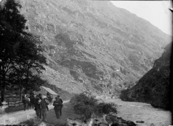 -- Alpinisme -- Congrès -- Arbre -- Homme -- Costume masculin -- Chapeau -- Manteau -- Divertissement et sport -- Montagne -- Femme -- Versant rocheux -- Chemin -- Rivière