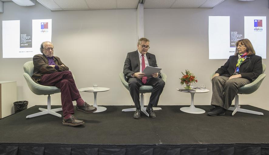 Keywords: indoor •¿Qué entendemos por ciencia y tecnología? ¿Consideramos que nuestra educación en C y T es óptima? ¿Qué tanto prestigio tienen los científicos para los chilenos?, son algunas preguntas que responde la Encuesta Nacional de Percepción Social de la Ciencia y la Tecnología en Chile. CONICYT dará a conocer a la comunidad los resultados de la Encuesta Nacional que mide la Percepción Social de la Ciencia y la Tecnología en Chile, consulta realizada entre los meses de octubre 2015 y enero 2016, en zonas urbanas y rurales, y que busca establecer una línea base que permita conocer el estado actual en que se encuentra la relación de la sociedad con esta actividad. “Los resultados nos entregan valiosos antecedentes sobre la forma en que los chilenos entienden la ciencia y la actividad científica, por ejemplo, que la CyT nos permitirán tener una mejor calidad de vida. Esto nos obliga a compartir estos resultados con toda la comunidad, pero al mismo tiempo, comprender cómo la gente percibe estos temas nos permite mejorar nuestro aporte a la formación, desde los párvulos a la población en general; pero también traducir esa mejor comprensión y valoración de estas áreas puede impactar en los recursos que necesitamos no sólo en el ámbito formativo, sino también en el quehacer científico y tecnológico, que es imprescindible para el desarrollo económico y social del país”, explica Christian Nicolai, Director Ejecutivo de CONICYT. La encuesta presencial se aplicó a nivel nacional (en las 15 regiones del país) a 7.637 personas de 15 años y más, y se orientó bajo un marco teórico desarrollado en el documento “Consideraciones para la definición y medición de la cultura científica en Chile”, además de apreciaciones de la Red Iberoamericana de Indicadores de Ciencia y Tecnología, RICYT. Cabe destacar que, así como lo hace Chile, 11 países de la Región han aplicado este tipo de encuestas durante los últimos 15 años para conocer la percepción pública, acerca de la ciencia y la tecnología, abordando principalmente las dimensiones como: imagen sobre la CyT y de quienes las desarrollan; interés, nivel de información y hábitos cotidianos vinculados con estas temáticas; y la valoración y utilidad que éstas tienen. “Los datos que arroja esta encuesta son fundamentales para que el esfuerzo que realiza el país en Ciencia y Tecnología tenga cada día una mayor vinculación con las preocupaciones de la sociedad y una creciente incidencia en nuestro desarrollo social, cultural, y económico. Acoger estas prioridades va justamente en la línea de fortalecer las capacidades de planificación de CONICYT que nos encomendó la Presidenta de la República a comienzos de este año”, recalcó Mario Hamuy, Presidente del Consejo de CONICYT. “Estos datos otorgan un gran potencial como insumo de orientación para la toma de decisiones de las autoridades, universidades, fundaciones, empresas e investigadores comprometidos con el gran desafío que tenemos como país de incorporar el conocimiento y la inteligencia como herramientas que impulsen nuestro desarrollo”, agrega el doctor Hamuy. Del mismo modo, el Programa Explora de CONICYT concentra sus esfuerzos en ayudar a instaurar esta cultura científica en la población, a través de acciones de educación no formal en ciencias dirigidas a las nuevas generaciones desde la escolaridad temprana. ¿Cuánto de este conocimiento, actitudes y habilidades para la ciencia y tecnología han sido incorporadas por la población? “Es claro entonces que la ciencia no es de incumbencia exclusiva de los científicos, así como tampoco es un conocimiento que se crea para guardarse. La ciencia y tecnología están presentes en todos los espacios en que nos desarrollamos y, sin embargo, aún no sabemos cómo y cuánto se valora en nuestro país, cómo nos modifican y, también, cambian el rumbo de las sociedades”, explicó Christian Nicolai. Este estudio fue realizado por el Dirección de Estudios Sociales de la Pontificia Universidad Católica de Chile, DESUC. •¿Qué entendemos por ciencia y tecnología? ¿Consideramos que nuestra educación en C y T es óptima? ¿Qué tanto prestigio tienen los científicos para los chilenos?, son algunas preguntas que responde la Encuesta Nacional de Percepción Social de la Ciencia y la Tecnología en Chile. CONICYT dará a conocer a la comunidad los resultados de la Encuesta Nacional que mide la Percepción Social de la Ciencia y la Tecnología en Chile, consulta realizada entre los meses de octubre 2015 y enero 2016, en zonas urbanas y rurales, y que busca establecer una línea base que permita conocer el estado actual en que se encuentra la relación de la sociedad con esta actividad. “Los resultados nos entregan valiosos antecedentes sobre la forma en que los chilenos entienden la ciencia y la actividad científica, por ejemplo, que la CyT nos permitirán tener una mejor calidad de vida. Esto nos obliga a compartir estos resultados con toda la comunidad, pero al mismo tiempo, comprender cómo la gente percibe estos temas nos permite mejorar nuestro aporte a la formación, desde los párvulos a la población en general; pero también traducir esa mejor comprensión y valoración de estas áreas puede impactar en los recursos que necesitamos no sólo en el ámbito formativo, sino también en el quehacer científico y tecnológico, que es imprescindible para el desarrollo económico y social del país”, explica Christian Nicolai, Director Ejecutivo de CONICYT. La encuesta presencial se aplicó a nivel nacional (en las 15 regiones del país) a 7.637 personas de 15 años y más, y se orientó bajo un marco teórico desarrollado en el documento “Consideraciones para la definición y medición de la cultura científica en Chile”, además de apreciaciones de la Red Iberoamericana de Indicadores de Ciencia y Tecnología, RICYT. Cabe destacar que, así como lo hace C