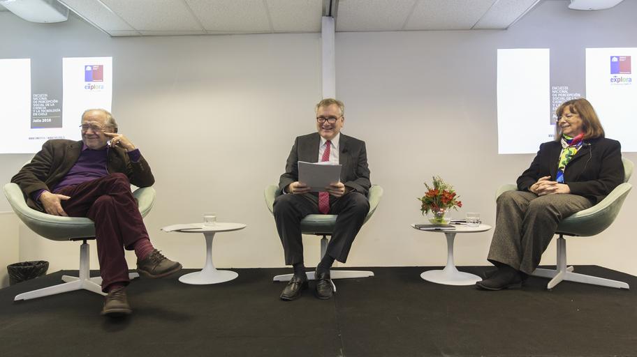 Keywords: indoor •¿Qué entendemos por ciencia y tecnología? ¿Consideramos que nuestra educación en C y T es óptima? ¿Qué tanto prestigio tienen los científicos para los chilenos?, son algunas preguntas que responde la Encuesta Nacional de Percepción Social de la Ciencia y la Tecnología en Chile. CONICYT dará a conocer a la comunidad los resultados de la Encuesta Nacional que mide la Percepción Social de la Ciencia y la Tecnología en Chile, consulta realizada entre los meses de octubre 2015 y enero 2016, en zonas urbanas y rurales, y que busca establecer una línea base que permita conocer el estado actual en que se encuentra la relación de la sociedad con esta actividad. “Los resultados nos entregan valiosos antecedentes sobre la forma en que los chilenos entienden la ciencia y la actividad científica, por ejemplo, que la CyT nos permitirán tener una mejor calidad de vida. Esto nos obliga a compartir estos resultados con toda la comunidad, pero al mismo tiempo, comprender cómo la gente percibe estos temas nos permite mejorar nuestro aporte a la formación, desde los párvulos a la población en general; pero también traducir esa mejor comprensión y valoración de estas áreas puede impactar en los recursos que necesitamos no sólo en el ámbito formativo, sino también en el quehacer científico y tecnológico, que es imprescindible para el desarrollo económico y social del país”, explica Christian Nicolai, Director Ejecutivo de CONICYT. La encuesta presencial se aplicó a nivel nacional (en las 15 regiones del país) a 7.637 personas de 15 años y más, y se orientó bajo un marco teórico desarrollado en el documento “Consideraciones para la definición y medición de la cultura científica en Chile”, además de apreciaciones de la Red Iberoamericana de Indicadores de Ciencia y Tecnología, RICYT. Cabe destacar que, así como lo hace Chile, 11 países de la Región han aplicado este tipo de encuestas durante los últimos 15 años para conocer la percepción pública, acerca de la ciencia y la tecnología, abordando principalmente las dimensiones como: imagen sobre la CyT y de quienes las desarrollan; interés, nivel de información y hábitos cotidianos vinculados con estas temáticas; y la valoración y utilidad que éstas tienen. “Los datos que arroja esta encuesta son fundamentales para que el esfuerzo que realiza el país en Ciencia y Tecnología tenga cada día una mayor vinculación con las preocupaciones de la sociedad y una creciente incidencia en nuestro desarrollo social, cultural, y económico. Acoger estas prioridades va justamente en la línea de fortalecer las capacidades de planificación de CONICYT que nos encomendó la Presidenta de la República a comienzos de este año”, recalcó Mario Hamuy, Presidente del Consejo de CONICYT. “Estos datos otorgan un gran potencial como insumo de orientación para la toma de decisiones de las autoridades, universidades, fundaciones, empresas e investigadores comprometidos con el gran desafío que tenemos como país de incorporar el conocimiento y la inteligencia como herramientas que impulsen nuestro desarrollo”, agrega el doctor Hamuy. Del mismo modo, el Programa Explora de CONICYT concentra sus esfuerzos en ayudar a instaurar esta cultura científica en la población, a través de acciones de educación no formal en ciencias dirigidas a las nuevas generaciones desde la escolaridad temprana. ¿Cuánto de este conocimiento, actitudes y habilidades para la ciencia y tecnología han sido incorporadas por la población? “Es claro entonces que la ciencia no es de incumbencia exclusiva de los científicos, así como tampoco es un conocimiento que se crea para guardarse. La ciencia y tecnología están presentes en todos los espacios en que nos desarrollamos y, sin embargo, aún no sabemos cómo y cuánto se valora en nuestro país, cómo nos modifican y, también, cambian el rumbo de las sociedades”, explicó Christian Nicolai. Este estudio fue realizado por el Dirección de Estudios Sociales de la Pontificia Universidad Católica de Chile, DESUC. •¿Qué entendemos por ciencia y tecnología? ¿Consideramos que nuestra educación en C y T es óptima? ¿Qué tanto prestigio tienen los científicos para los chilenos?, son algunas preguntas que responde la Encuesta Nacional de Percepción Social de la Ciencia y la Tecnología en Chile. CONICYT dará a conocer a la comunidad los resultados de la Encuesta Nacional que mide la Percepción Social de la Ciencia y la Tecnología en Chile, consulta realizada entre los meses de octubre 2015 y enero 2016, en zonas urbanas y rurales, y que busca establecer una línea base que permita conocer el estado actual en que se encuentra la relación de la sociedad con esta actividad. “Los resultados nos entregan valiosos antecedentes sobre la forma en que los chilenos entienden la ciencia y la actividad científica, por ejemplo, que la CyT nos permitirán tener una mejor calidad de vida. Esto nos obliga a compartir estos resultados con toda la comunidad, pero al mismo tiempo, comprender cómo la gente percibe estos temas nos permite mejorar nuestro aporte a la formación, desde los párvulos a la población en general; pero también traducir esa mejor comprensión y valoración de estas áreas puede impactar en los recursos que necesitamos no sólo en el ámbito formativo, sino también en el quehacer científico y tecnológico, que es imprescindible para el desarrollo económico y social del país”, explica Christian Nicolai, Director Ejecutivo de CONICYT. La encuesta presencial se aplicó a nivel nacional (en las 15 regiones del país) a 7.637 personas de 15 años y más, y se orientó bajo un marco teórico desarrollado en el documento “Consideraciones para la definición y medición de la cultura científica en Chile”, además de apreciaciones de la Red Iberoamericana de Indicadores de Ciencia y Tecnología, RICYT. Cabe destacar que, así como lo hace C