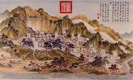 | Keywords: Conquest of Zeichao.jpg 阿桂攻克金 司索諾 官寨情形 en A scene of the Jinchuan Campaign 1771-1776 http //www battle-of-qurman com cn/e/hist htm late XVIII century A collaboration between Chinese and European painters The Jesuit missionaries involved in producing the drawings in China were Giuseppe Castiglione Jean-Denis Attiret Ignace Sichelbart and Jean Damascene The engravings were executed in Paris under the direction of Charles-Nicolas Cochin of the Académie Royal at the Court of Louis XVI and the individual engravers include Le Bas Aliamet Prevot Saint-Aubin Masquelier Choffard and Launay PD-Art Military of Qing China Ten Great Campaigns Paintings of the Qing Dynasty Himalayan Towers |