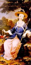 | Keywords: Consort Rong.JPG POrtrait of Consort Rong aka the Fragrant Consort dressed in Western Clothes Palace Museum Archives Early 18th Century Palace Painter PD-old PD-China 1788 deaths Chinese people Females in art in three-quarter views Arms Paintings of people wearing hats Consorts of the Qianlong Emperor |