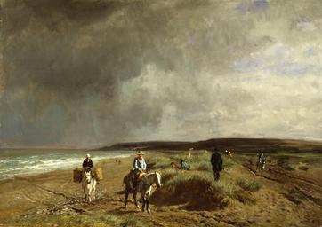 | Keywords: Constant Troyon - Coast near Villers - Walters 37993.jpg Troyon was the third generation of his family to be employed at the Sèvres Manufactory decorating porcelains In his spare time he began to sketch in the Fontainebleau Forest where he met other painters who would become associated with the Barbizon school Troyon was a gifted marine painter and in the early 1850s acquired a house at Villers which he named The Academy of Landscape He worked here closely with several young painters including Eugène Boudin After seeing the works of the Dutch 17th-century masters Paulus Potter and Albertus Cuyp during a tour of the Netherlands and Belgium in 1847 Troyon decided to specialize in animal genre subjects In this view of an impending storm near the resort village of Villers-sur-Mer the artist presents a cross section of society a peasant couple riding on ponies equipped with baskets for carrying seaweed a sportsman from town strolling with his gun and hunters erecting fowling nets ca 1859 Oil on canvas cm 67 4 95 7 Framed cm 106 52 135 41 15 88 accession number 37 993 32030 Mrs Mary J Morgan Sale New York March 3-5 1886 no 72 Mrs S D Warren Sale American Art Association Boston January 8-9 1903 no 115 Henry Walters city Baltimore Walters Art Museum Henry Walters Acquired by Henry Walters 1903 C Troyon signed in black at lower left Before Monet Landscape Painting in France and Impressionist Masters Highlights from The Walters Collection The Walters Art Gallery Baltimore 1998 Triumph of French Painting Masterpieces from Ingres to Matisse Baltimore Museum of Art Baltimore; Philbrook Museum of Art Tulsa; Norton Museum of Art West Palm Beach; Royal Academy of Arts London; Albright-Knox Art Gallery Buffalo; Dayton Art Institute Dayton 2000-2002 A Magnificent Age Masterpieces from the Walters Art Museum Baltimore The Nelson-Atkins Museum of Art Kansas City; Mint Museum of Art Charlotte; The Walters Art Museum Baltimore 2002-2004 The Road to Impressionism Landscapes from Corot to Manet The Walters Art Museum Baltimore 2004-2005 Impressionists by the Sea Royal Academy of Arts London; The Phillips Collection Washington; Wadsworth Atheneum Museum of Art Hartford 2007-2008 The Road to Impressionism Barbizon Landscapes from the Walters Art Museum The Dixon Gallery and Gardens Memphis; The Frick Art Historical Center Pittsburgh 2008-2009 19th Century Masterpieces from the Walters Art Museum Santa Barbara Museum of Art Santa Barbara; Jack S Blanton Museum of Art Austin 2010-2011 place of origin France Walters Art Museum license 2D Constant Troyon Media contributed by the Walters Art Museum needs category review French paintings in the Walters Art Museum 1850s paintings from France |