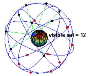 | Keywords: ConstellationGPS.gif A simulation of the original design of the GPS space segment with 24 GPS satellites 4 satellites in each of 6 orbits showing the evolution of the number of visible satellites from a fixed point 45°N on earth considering visibility as having direct line of sight The parameters used to simulate the orbits are eccentricity e 0 05 inclination i 55° and a separation between orbits of 60° in the right ascension of the ascending node Within each orbit the four satellites are evenly spaced the instant of pass through perihelion being arbitrary for the first satellite in each orbit The orbital period of the satellites was taken to be 12 hours The earth was considered a perfect sphere with a radius of 6400 km The time in the animation is running about 2880 times faster than real time half a minute representing 24 hours as clearly seen in the rotation of earth The simulation was created using MATLAB and converted to animated gif format using Adobe ImageReady Eine Simulation von 24 GPS-Satelliten 4 auf jeder der 6 Umlaufbahnen die die Anzahl der zu einer bestimmten Zeit nutzbaren Satelliten an einem fixen Punkt 45°N zeigt Die Bahnen wurden mit folgenden Voraussetzungen simuliert Exzentrizität e 0 05 Neigung i 55° und Trennung zwischen den Bahnen von 60° in der Rektaszension des aufsteigenden Knotens Innerhalb der Bahnen sind die Satelliten gleichmäßig verteilt die Position des ersten Satelliten wurde willkürlich gewählt Die Satelliten umrunden den Planeten innerhalb von 12 Stunden Der Planet ist eine ideale Sphäre mit einem Radius von 6400 km Der Zeitraffer beschleunigt die Animation ca um das 2880-fache was dazu führt dass 24 Stunden in einer halben Minute vergehen siehe Umdrehung des Planeten Die Simulation wurde mit MATLAB erstellt und mit Adobe ImageReady ins GIF-Format übertragen Transferred from http //en wikipedia org en wikipedia 2007-12-07 Original uploader was El pak at http //en wikipedia org en wikipedia Released into the public domain by the author Created with MATLAB en wikipedia El pak original upload log page en wikipedia ConstellationGPS gif 2007-12-09 17 51 El pak 240×192×8 497149 bytes <nowiki>A simulation of the original design of the GPS space segment with 24 GPS satellites 4 satellites in each of 6 orbits showing the evolution of the number of visible satellites from a fixed point 45ºN on earth considering visibility as having dire</nowiki> 2007-12-07 01 41 El pak 316×272×10 1186667 bytes <nowiki>A simulation of the 24 GPS satellites 4 satellites in each of 6 orbits including the evolution of the number of visible satellites from a fixed point 45ºN on earth considering visibility as having direct line of sight </nowiki> Global Positioning System Animated diagrams Animated GIF |