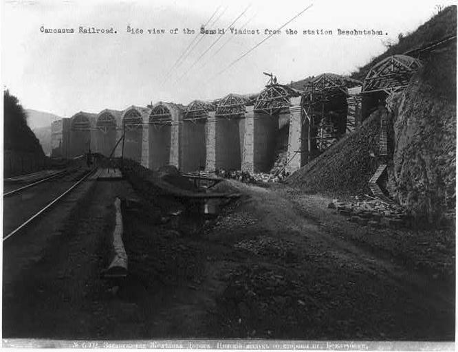 | Keywords: Constr. of Caucasus RR; view of Senski Viaduct from Beschutaban station. ca. 1890s.jpg en Summary Construction of Transcaucasus Railroad; view of Tsipi Viaduct from Bezhatubani station http //lcweb2 loc gov/pnp/cph/3b10000/3b17000/3b17400/3b17424r jpg United States Library of Congress ca other date s 1890 Creator Dimitry Ermakov Source LOC-image cph 3b17424 PD-old Georgia in the 1890s Railway bridges in Georgia Viaducts in Georgia Kharagauli District Photos by Dimitri Ermakov History of Imereti |
