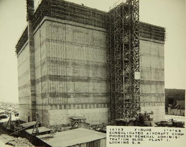 | Keywords: sdasm san diego air and space museum sandiegoairandspacemuseum aviation aeropace factories aeropacefactories san diego sandiego convair consolidated architecture building monochrome Call No.: 10-000046 Notes: Construction of Administration Building Title: Consolidated/Convair Aircraft Factory San Diego Year: 1942 Corp. Name: Convair/Consolidated Description: 8 x 10 Black and White Glossy Print Repository: San Diego Air and Space Museum Archive Call No.: 10-000046 Notes: Construction of Administration Building Title: Consolidated/Convair Aircraft Factory San Diego Year: 1942 Corp. Name: Convair/Consolidated Description: 8 x 10 Black and White Glossy Print Repository: San Diego Air and Space Museum Archive |