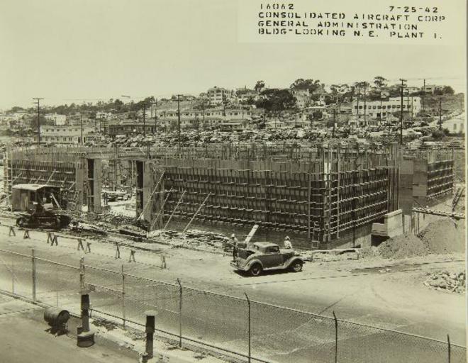 | Keywords: sdasm san diego air and space museum sandiegoairandspacemuseum aviation aeropace factories aeropacefactories san diego sandiego convair consolidated monochrome Call No.: 10-000016 Notes: Construction of Administration Building Title: Consolidated/Convair Aircraft Factory San Diego Year: 1942 Corp. Name: Convair/Consolidated Description: 8 x 10 Black and White Glossy Print Repository: San Diego Air and Space Museum Archive Call No.: 10-000016 Notes: Construction of Administration Building Title: Consolidated/Convair Aircraft Factory San Diego Year: 1942 Corp. Name: Convair/Consolidated Description: 8 x 10 Black and White Glossy Print Repository: San Diego Air and Space Museum Archive |