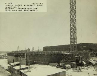 | Keywords: sdasm san diego air and space museum sandiegoairandspacemuseum aviation aeropace factories aeropacefactories san diego sandiego convair consolidated monochrome Call No.: 10-000029 Notes: Construction of Administration Building Title: Consolidated/Convair Aircraft Factory San Diego Year: 1942 Corp. Name: Convair/Consolidated Description: 8 x 10 Black and White Glossy Print Repository: San Diego Air and Space Museum Archive Call No.: 10-000029 Notes: Construction of Administration Building Title: Consolidated/Convair Aircraft Factory San Diego Year: 1942 Corp. Name: Convair/Consolidated Description: 8 x 10 Black and White Glossy Print Repository: San Diego Air and Space Museum Archive |