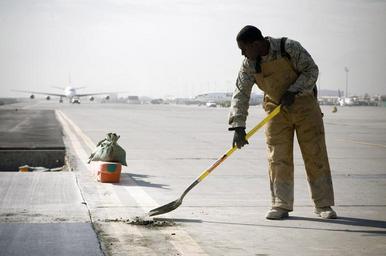 Keywords: construction cement patching runway labor worker concrete site shovel work tools