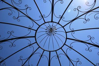Keywords: construction metal feature garden black ornate sky blue sunlight