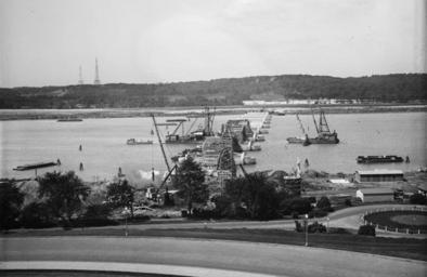 | Keywords: Construction on Arlington Memorial Bridge - 1928-05-15.jpg en Looking east at construction on Arlington Memorial Bridge over the Potomac River in Washington D C in the United States Note the statue on the partially-constructed pedestal just to the right of the abutments bottom center The U S Commission of Fine Arts erected this mock-up to determine how high statues on the piers of the bridge should be http //www loc gov/pictures/item/hec2013004918/ Harris Ewing 1928-05-15 Arlington Memorial Bridge PD-Harris-Ewing |