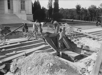 | Keywords: Construction on Tomb of the Unknown Soldier - Arlington National Cemetery - Arlington County VA USA - 1921.jpg en Construction on the base of the future Tomb of the Unknown Soldier in Arlington National Cemetery in Arlington County Virginia in the United States Image was taken between June 1921 when alternative sites to the cemetery were rejected and early November 1921 when the tomb was completed Memorial Amphitheater can be see to the left The shaft and footings that would lead down about 20 feet into the earth where the coffin would lay are also visible http //www loc gov/pictures/item/hec2013002055/ Harris Ewing 1921 Tomb of the Unknowns in 1921 PD-USGov |