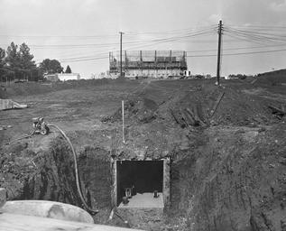 | Keywords: blackandwhite monochrome outdoor black and white Full Description: At its founding, the Marshall Space Flight Center (MSFC) inherited the Army's Jupiter and Redstone test stands, but much larger facilities were needed for the giant stages of the Saturn V. From 1960 to 1964, the existing stands were remodeled and a sizable new test area was developed. The new comprehensive test complex for propulsion and structural dynamics was unique within the nation and the free world, and they remain so today because they were constructed with foresight to meet the future as well as on going needs. Construction of the S-IC Static test stand complex began in 1961 in the west test area of MSFC, and was completed in 1964. The S-IC static test stand was designed to develop and test the 138-ft long and 33-ft diameter Saturn V S-IC first stage, or booster stage, weighing in at 280,000 pounds. Required to hold down the brute force of a 7,500,000-pound thrust produced by 5 F-1 engines, the S-IC static test stand was designed and constructed with the strength of hundreds of tons of steel and 12,000,000 pounds of cement, planted down to bedrock 40 feet below ground level. The foundation walls, constructed with concrete and steel, are 4 feet thick. The base structure consists of four towers with 40-foot-thick walls extending upward 144 feet above ground level. The structure was topped by a crane with a 135-foot boom. With the boom in the upright position, the stand was given an overall height of 405 feet, placing it among the highest structures in Alabama at the time. In addition to the stand itself, related facilities were constructed during this time. Built directly east of the test stand was the Block House, which served as the control center for the test stand. The two were connected by a narrow access tunnel which housed the cables for the controls. This construction photo taken August 17, 1962 depicts a view of the Block House from the test stand site. The tunnel opening is visible in the forefront center of the photo. Image #: SPD-MARSH-0600551 Date: August 17, 1962 Full Description: At its founding, the Marshall Space Flight Center (MSFC) inherited the Army's Jupiter and Redstone test stands, but much larger facilities were needed for the giant stages of the Saturn V. From 1960 to 1964, the existing stands were remodeled and a sizable new test area was developed. The new comprehensive test complex for propulsion and structural dynamics was unique within the nation and the free world, and they remain so today because they were constructed with foresight to meet the future as well as on going needs. Construction of the S-IC Static test stand complex began in 1961 in the west test area of MSFC, and was completed in 1964. The S-IC static test stand was designed to develop and test the 138-ft long and 33-ft diameter Saturn V S-IC first stage, or booster stage, weighing in at 280,000 pounds. Required to hold down the brute force of a 7,500,000-pound thrust produced by 5 F-1 engines, the S-IC static test stand was designed and constructed with the strength of hundreds of tons of steel and 12,000,000 pounds of cement, planted down to bedrock 40 feet below ground level. The foundation walls, constructed with concrete and steel, are 4 feet thick. The base structure consists of four towers with 40-foot-thick walls extending upward 144 feet above ground level. The structure was topped by a crane with a 135-foot boom. With the boom in the upright position, the stand was given an overall height of 405 feet, placing it among the highest structures in Alabama at the time. In addition to the stand itself, related facilities were constructed during this time. Built directly east of the test stand was the Block House, which served as the control center for the test stand. The two were connected by a narrow access tunnel which housed the cables for the controls. This construction photo taken August 17, 1962 depicts a view of the Block House from the test stand site. The tunnel opening is visible in the forefront center of the photo. Image #: SPD-MARSH-0600551 Date: August 17, 1962 |