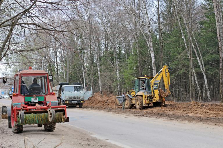 Keywords: construction repair road technique working digging laying pipe excavator roadway