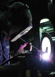 Keywords: construction worker welding welder industry metal military person labor build helmet mask job task