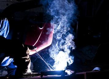 Keywords: construction worker welding welder industry metal military person labor build helmet mask job task