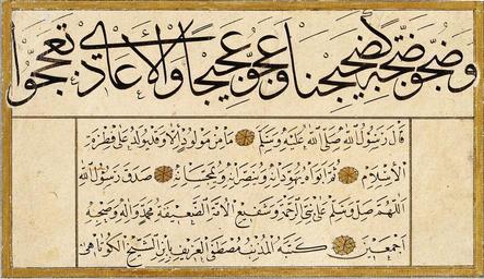 | Keywords: Containing Mustafa Kütahi's calligraphies - Murakka (calligraphic album)-editted-4 A Q.jpg خوشنویسی اثر مصطفی کوتاهی که روایتی از محمد پیامبر اسلام را نشان می دهد ۱۷۶۷ میلادی 1787 Containing 574845 Mustafa Kütahi's calligraphies 1787 /collection/sakp-sabanc-museum/artwork/murakka-calligraphic-album-containing-mustafa-kutahis-calligraphies/574846/ Containing Mustafa Kütahi's calligraphies /artist/mustafa-kutahi/4129374/ 4129374 /collection/sakp-sabanc-museum/ Sakıp Sabancı Museum 479109 http //muze sabanciuniv edu/ 12/28/2011 6 21 32 PM /collection/sakp-sabanc-museum/artwork/murakka-calligraphic-album-containing-mustafa-kutahis-calligraphies/574846/ 1767 1767 232 574846 False 1767 3/24/2012 5 19 49 AM 120-0386-MK Sakıp Sabancı Museum Ink colours and gold on paper 1760 1770 w155 x h232 mm 1767 False 1 51032448377581 Sakıp Sabancı Museum Object murakka-calligraphic-album-containing-mustafa-kutahis-calligraphies Murakka calligraphic album m 155 special url_id TQFeP-qoe2uJjA Assessments 1 Containing_Mustafa_Kütahi 27s_calligraphies_-_Murakka_ calligraphic_album -editted-4_A_Q jpg_ بار_دوم PD-old-100 Google Art Project works by Mustafa Kütahi Islamic calligraphy |