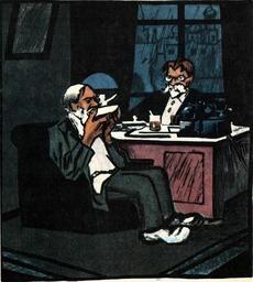 | Keywords: Contemporary Khor and Kalinych by Ivan Malyutin 1925.jpg Artwork Creator Ivan Malyutin Contemporary Khor and Kalinych<ref name note> en Khor and Kalinych are the two friends peasants from the short story of the same name from the collection w A Sportsman's Sketches by Ivan Turgenev Хо ь и Калиныч два д уга-к естьянина из одноименного ассказа И С Ту генева входящего в сбо ник w Записки охотника «Записки охотника» ru </ref> The friendly cartoon sketch to the fiftieth birthday of w Mikhail Kalinin Kalinin is depicted in his office in the Kremlin talking with a peasant petitioner The welcomed old man is calmly drinking tea in a country way from a saucer Д ужеский ша ж-за исовка к пятидесятилетию w Калинин ихаил Иванович И Калинина ru Калинин изоб ажён в своём к емлёвском кабинете во в емя беседы с к естьянским ходоком Ста ик успокоенный тёплым п иёмом ми но попивает чай по-де евенски из блюдечка 1925 object history Krokodil a Soviet magazine of satire and humor Впе вые опубликовано в 1925 году в советском жу нале сати ы и юмо а К окодил жу нал «К окодил» ru See below exhibition history credit line accession number Scanned from cite book Аб амский И П Смех сильных осква Искусство 1977 63 ru See below Other fields Information field LangSwitch Notes П имечания <references/> PD-old-auto 1932 Caricatures by Ivan Malyutin Krokodil Mikhail Kalinin in art 1925 cartoons Caricatures of politicians of Russia Peasants from Russia in art Peasants in art Tea drinking in art Reproductions of artworks uploaded by Dmitry Ivanov Malyutin Magazines of Russia unidentified year Offices in the 1920s |