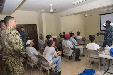 | Keywords: Continuing Promise 2015 150413-N-PD309-001.jpg en 150413-N-PD309-001 LA DEMOCRACIA Hospital Corpsman 1st Class Ronald L Fells a native of York Pa assigned to Branch Health Clinic Naval Station Norfolk teaches a Basic Life Support course to employees of The Belize Zoo Tropical Education Center as part of Continuing Promise 2015 Continuing Promise is a U S Southern Command-sponsored and U S Naval Forces Southern Command/U S 4th Fleet-conducted deployment to conduct civil-military operations including humanitarian-civil assistance subject matter expert exchanges medical dental veterinary and engineering support and disaster response to partner nations and to show U S support and commitment to Central and South America and the Caribbean 2015-04-13 April 13 2015 https //www dvidshub net/image/1874291 150413-N-PD309-001 2015-04-15 10 00 LA DEMOCRACIA BZ PD-USGov-Military-Navy Naval Station Norfolk Images from DoD uploaded by Fæ Continuing Promise 2015 |