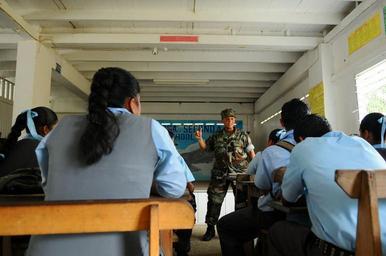 | Keywords: Continuing Promise in Guyana DVIDS130401.jpg en Lt Cmdr Celeste Santana a member of the medical team embarked aboard the amphibious assault ship USS Kearsarge gives children at the Santa Rosa Secondary School a preventive medicine health lecture Kearsarge is supporting the Caribbean phase of Continuing Promise 2008 an equal-partnership mission between the United States Canada the Netherlands Brazil Nicaragua Colombia Dominican Republic Trinidad and Tobago and Guyana 2008-11-19 https //www dvidshub net/image/130401 081119-N-+++++-050 2008-11-21 22 48 SANTA ROSA GY PD-USGov-Military-Navy USS Kearsarge LHD-3 Images from DoD uploaded by Fæ |