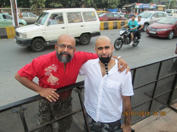 Keywords: 'CONTRAST OF BEARD STYLES'.JPG en Seafarer/Blogger/Tourist Rudolph A Furtado red shirt with Mr Tiada London based phototographer/Advertiser at the Worli Festival-2014 in Mumbai own Rudolph A Furtado Sunday 26-1-2014 Men with beards Taken with Canon PowerShot A810 Cc-zero |