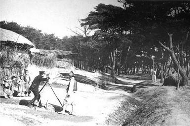 | Keywords: Control point surveying.jpg Goyang Gyeonggi Province Korea What a surveyor is peeping is a transit theodolite under which there is a control point marker Far ahead a surveying pole is held by an assistant surveyor ja 京畿道道高陽郡 根測量 業施工の状況 測量員の覘視するものは轉鏡経緯 にして其の下方に樹立するは 根点の標 遥前方に測夫の支持するものは量 尺なり 2015-04-02 08 18 48 cite book 鮮 調査事業報告書 Report on survey of land in Korea 鮮総 臨時 調査 Governor-General of Korea Temporary Land Survey Bureau 1918 https //books google co jp/books id FwJawhwd-M4C printsec frontcover v onepage q f false 254-255 鮮総 臨時 調査 Governor-General of Korea Temporary Land Survey Bureau other versions Custom license marker 2015 04 02 PD-Japan PD-1996 Japan Uploaded with UploadWizard Surveying Korea under Japanese rule |