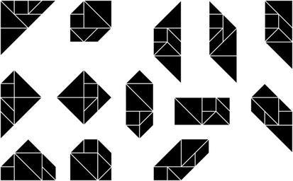 | Keywords: Convex tangram shapes.svg en all convex tangram shapes 2014-06-05 01 08 22 own László Németh <gallery>File convex_tangram_shapes_black_01 svg silhouette</gallery> Source code ; Created in LibreOffice 4 2 with this LibreLogo program ; Usage Put this code into an English language document in LibO Writer ; and click on the Start icon of the View»Toolbars»Logo toolbar GLOBAL ox oy TO origin x y GLOBAL ox oy ox 150+x 20 oy 600-y 20 END TO place x y POSITION ox+x 20 oy-y 20 END TO line x y x2 y2 PENUP place x y PENDOWN place x2 y2 END TO tri x y x2 y2 x3 y3 line x y x2 y2 place x3 y3 FILL END TO box x y x2 y2 x3 y3 x4 y4 line x y x2 y2 place x3 y3 place x4 y4 FILL END PICTURE convex_tangram_shapes svg PENSIZE 1 HIDETURTLE PENCOLOR WHITE FILLCOLOR BLACK origin 18 2 tri 3 0 3 2 1 2 tri 1 2 1 3 2 2 tri 2 2 0 4 2 4 tri 0 4 1 5 2 4 tri 2 4 2 3 3 3 box 3 3 3 2 2 2 2 3 box 1 2 1 3 0 4 0 3 origin 19 8 tri 0 2 2 2 2 0 tri 0 4 0 5 1 4 tri 0 2 0 3 1 3 tri 0 2 1 3 2 2 tri 0 5 2 5 2 3 box 0 3 0 4 1 4 1 3 box 1 3 1 4 2 3 2 2 origin 12 5 4 tri 0 0 0 2 2 0 tri 0 2 2 2 2 0 tri 2 0 2 1 3 1 tri 2 0 3 1 4 0 tri 4 1 4 2 3 2 box 2 1 2 2 3 2 3 1 box 3 1 3 2 4 1 4 0 origin 15 7 tri 0 2 2 2 2 0 tri 0 2 2 2 2 4 tri 0 3 0 4 1 4 tri 0 5 0 6 1 5 tri 1 5 1 3 2 4 box 0 4 0 5 1 5 1 4 box 0 2 0 3 1 4 1 3 origin 11 0 tri 0 1 2 1 2 3 tri 2 1 2 3 4 3 tri 1 0 1 1 2 0 tri 1 1 3 1 2 0 tri 2 1 3 2 3 1 box 0 0 0 1 1 1 1 0 box 3 1 3 2 4 3 4 2 origin 9 3 tri 0 2 2 2 0 4 tri 0 4 2 4 2 2 tri 0 4 1 5 2 4 tri 0 1 1 1 1 0 tri 1 1 1 2 2 2 box 1 0 1 1 2 2 2 1 box 0 1 0 2 1 2 1 1 origin 11 7 tri 0 2 2 2 2 0 tri 0 4 2 4 2 6 tri 0 2 0 3 1 3 tri 0 2 1 3 2 2 tri 1 4 2 4 2 3 box 0 3 0 4 1 4 1 3 box 1 3 1 4 2 3 2 2 origin 5 0 tri 0 0 0 2 2 0 tri 0 2 2 2 2 0 tri 0 2 1 3 1 2 tri 2 0 3 1 2 2 tri 2 0 3 0 3 1 box 1 2 1 3 2 3 2 2 box 2 2 2 3 3 2 3 1 origin 4 4 tri 0 2 2 2 2 0 tri 0 2 2 4 2 2 tri 2 4 2 3 3 3 tri 2 1 2 2 3 2 tri 3 1 3 3 4 2 box 2 2 2 3 3 3 3 2 box 2 0 2 1 3 2 3 1 origin 5 10 tri 0 0 0 1 1 0 tri 0 1 3 1 1 0 tri 0 2 1 3 1 2 tri 1 1 1 3 3 1 tri 1 3 3 3 3 1 box 0 1 0 2 1 2 1 1 box 1 0 2 1 3 1 2 0 origin 0 0 tri 0 1 1 2 1 1 tri 1 0 1 2 3 0 tri 1 2 3 2 3 0 tri 1 2 2 3 3 2 tri 3 0 3 1 4 0 box 0 0 0 1 1 1 1 0 box 3 1 3 2 4 1 4 0 origin 0 3 tri 0 0 0 2 1 1 tri 0 3 1 3 1 2 tri 0 4 1 5 1 4 tri 1 3 1 5 3 3 tri 1 1 1 3 3 3 box 0 2 0 3 1 2 1 1 box 0 3 0 4 1 4 1 3 origin 0 9 tri 0 0 0 2 2 2 tri 0 2 0 4 2 2 tri 2 2 1 3 3 3 tri 0 4 1 4 1 3 tri 2 3 2 4 3 4 box 1 3 1 4 2 4 2 3 box 2 3 3 4 4 4 3 3 cc-zero Tangrams of convex geometrical shapes Images with LibreLogo source code Created with LibreOffice Valid SVG Uploaded with UploadWizard Dissection Puzzles |