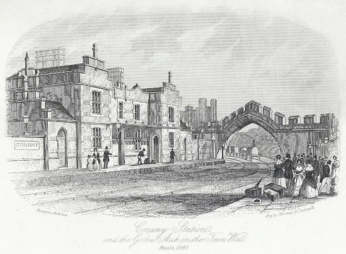 | Keywords: Conway Station, and the Gothic arch in the Town Wall. Built,1847.jpeg Abstract Passengers with luggage waiting for incoming train Size mm 223 152 exhibition history Institution National Library of Wales Technique print engraving bw object history object type PD-old-70-1923 place of creation place of discovery 1132338 Conway Station and the Gothic arch in the Town Wall Built 1847 Uploaded with GWToolset Conway Station and the Gothic arch in the Town Wall Built 1847 http //dams llgc org uk/behaviour/llgc-id 1132338/fedora-bdef image/reference Images uploaded as part of NLW - WMUK collaboration Welsh Landscape Collection Conwy railway station |