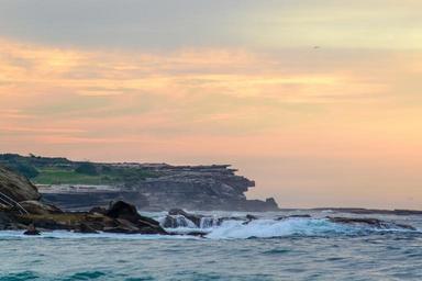 Keywords: coogee sydney australia ocean rocks sunrise pink