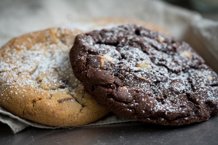 Keywords: cookies two chocolate cookie nut cookie cookie food chocolate chip cookies baked goods delicious baked food nutrition edible small cakes bakery treat chocolate frisch nuts eat fine pastry nibble sweet bake even baked pastries icing sugar calories food-photography sweetness close crispy