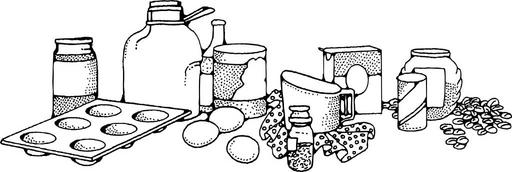 Keywords: cooking ingredients receipe bread ingredients muffin ingredients roll ingredients grain muffin tin muffin pan sifter eggs flour milk baking powder salt yeast hot muffins hot rolls utensils kitchen butter cooking