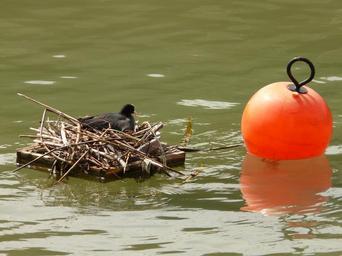 Keywords: coot nest water bird's nest breed boje swim red orange