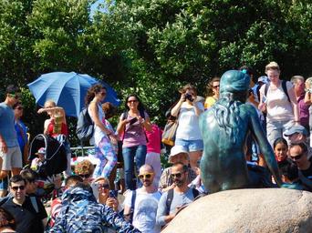 Keywords: copenhagen little mermaid denmark people crowd tourist attraction statue