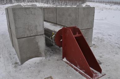 | Keywords: Copenhagen Suborbitals HEAT-1X test bed3.jpg en The front end of HEAT-1X peeping out from the Lego concrete bricks surrounding the rocket The bricks are needed during the ground test February 28th 2010 The red triangular structure is designed to absorb the full power of the 175 000 hp booster If successfully this rocket booster will launch the unmanned Tycho Brahe 1 to an altitude of 40 km in June 2010 own Necessary Evil 2010-02-21 Picture taken after HEAT-1X's removal from the Copenhagen Suborbitals' hangar HAB February 21st 2010 Copenhagen Suborbitals |