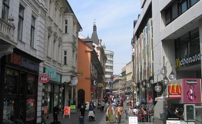 Keywords: CopovaUlica-Ljubljana.JPG Čopova street Ljubljana photo Ziga 21 22 27 April 2006 UTC Čopova ulica Street lights at Čop Street Pedestrians at Čop Street 2006-04-27 own assumed Žiga