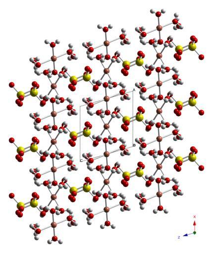 Keywords: Copper(II)-sulfate-pentahydrate-b-axis-xtal-2007-CM-3D-balls.png Ball-and-stick diagram of part of the crystal structure of copper II sulfate pentahydrate CuSO<sub>4</sub>·5H<sub>2</sub>O Viewed down the b axis of the triclinic unit cell Colour code Copper Cu orange-pink Sulfur S yellow Oxygen O red Hydrogen H white Crystal structure from http //dx doi org/10 2138/am 2007 2229 American Mineralogist 2007 92 532 “545 Image generated in http //www crystalmaker com/ CrystalMaker 8 3 Own 2010-07-26 Ben Mills Benjah-bmm27 Images by Ben Mills Ball-and-stick models Crystal structures of copper II sulfate pentahydrate |